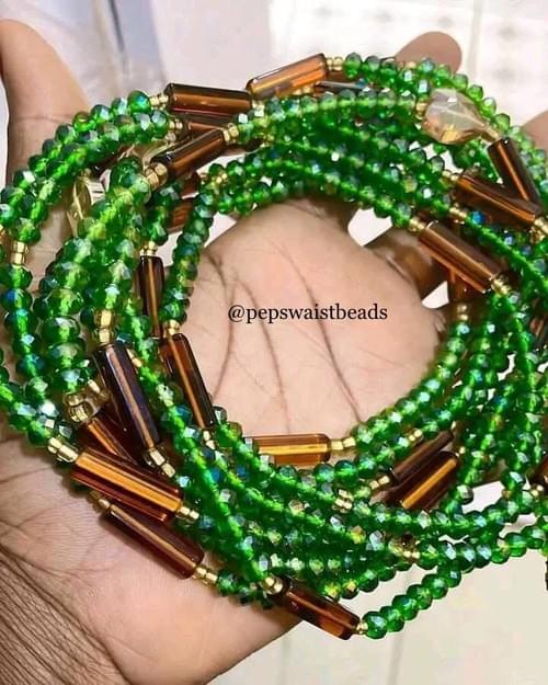 Tie on Waist bead Type: Crystal Bead Bead Size: 6 A Strand is 50 inches long & will go around you once.