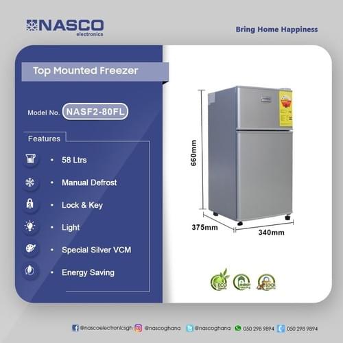 • Nasco NASF2-80FL Double Door Table Top Fridge - 58 Liters - Silver