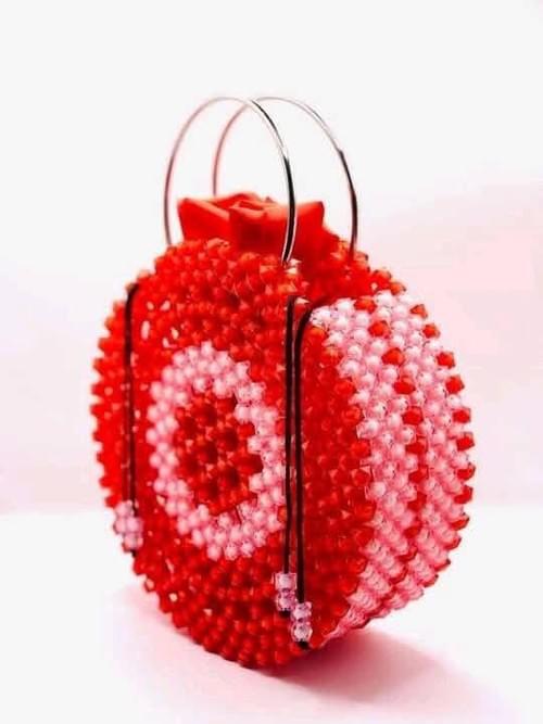 Red Bead Bag Flower Designer Brand Clear Acrylic Fashion Crystal Stone Tote Handbags Women Handmade