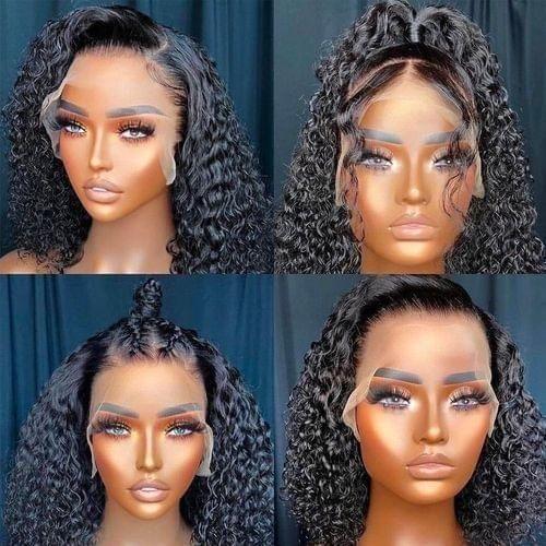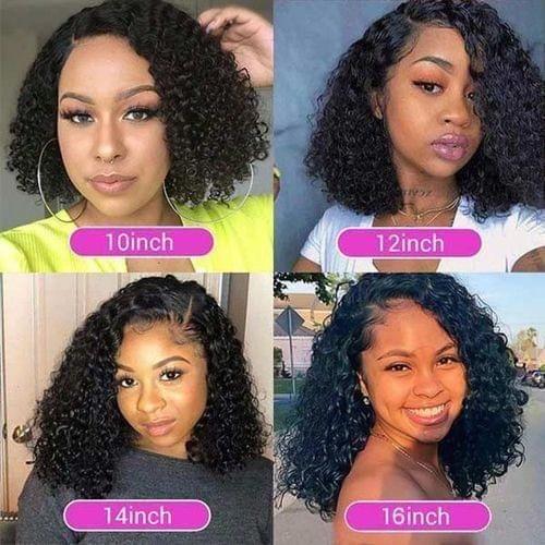 • Short Curly Bob Brazilian Hair Mesh Front Wiggings 13X4 Mesh Frontal 4x4Closure Deep Wave Wig 10Inch